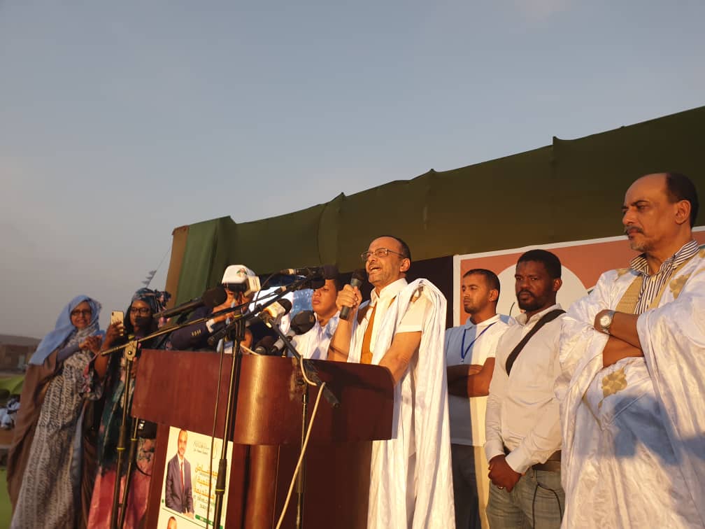 و قال ولد بوبكر ان المواطنين الآن امام خيارين اما مواصلة العشرية الأخيرة و نهج الرئيس محمد ولد عبد العزيز او خيار التغيير المدني.